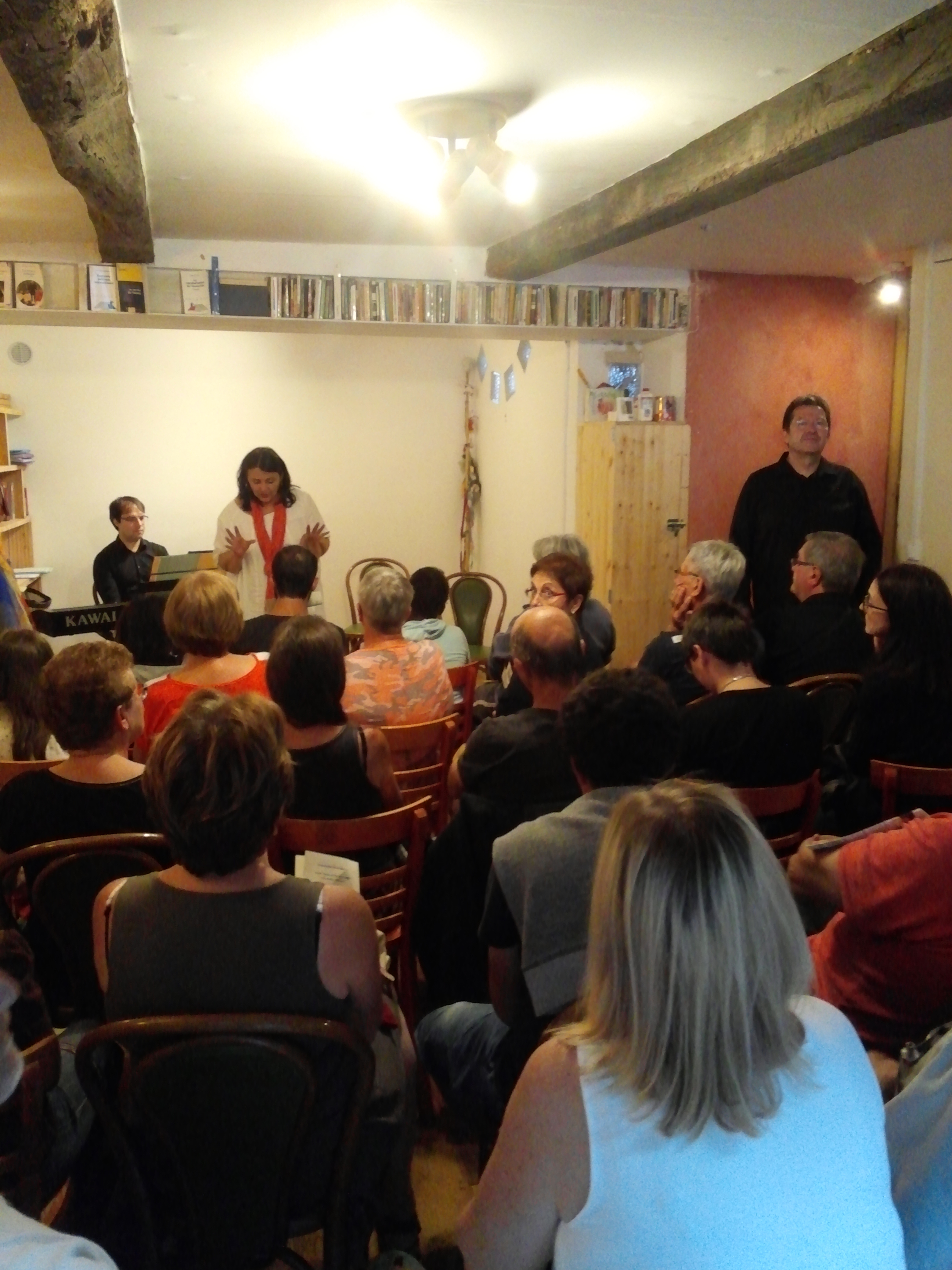 Promenade dans le temps et les sentiments amoureux où Thierry Peccard, chanteur, et Séverin Treille, pianiste, avec le souffle poétique des chants de Brel, Ferrat, Trenet, Dumont …, des musiques d’Albeniz, Ravel, Poulenc …, attisent la flamme de contes traditionnels de France et d’ailleurs, racontés par Marie Chantal Conte, conteuse.