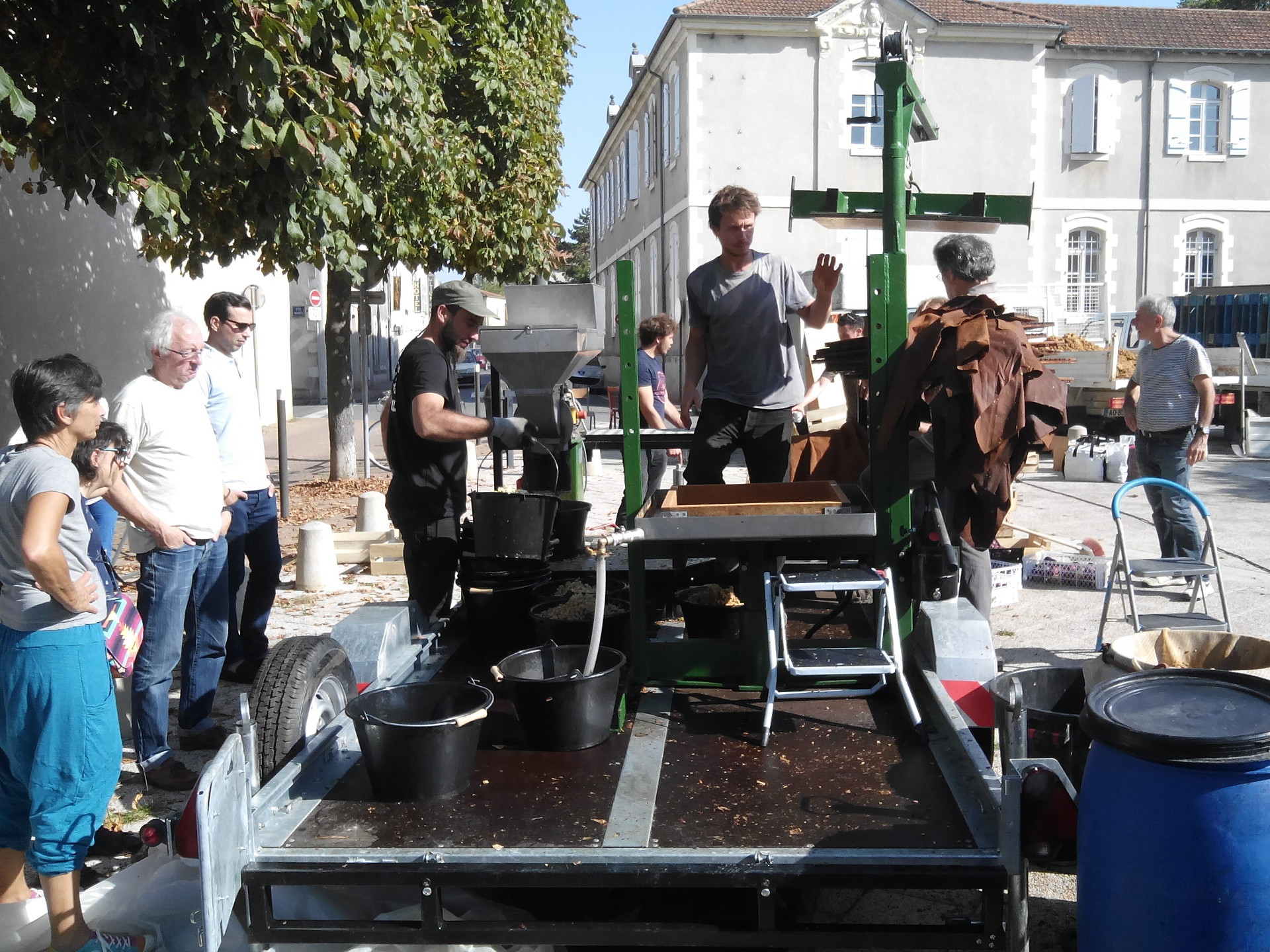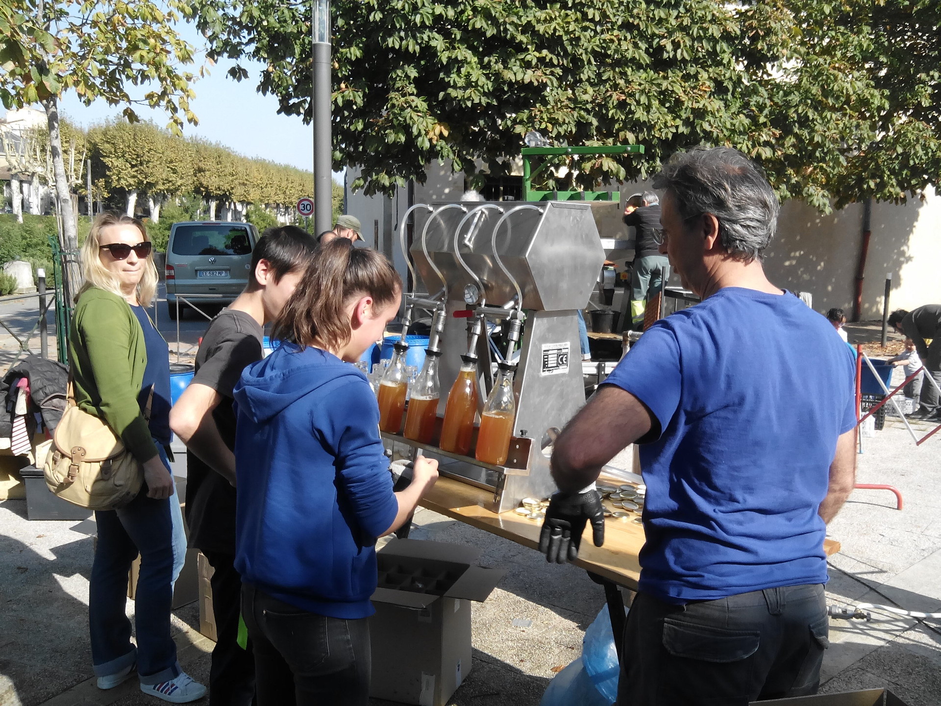 Plus de 2 tonnes de pommes réduites en jus, la journée fut laborieuse pour tous les bénévoles.